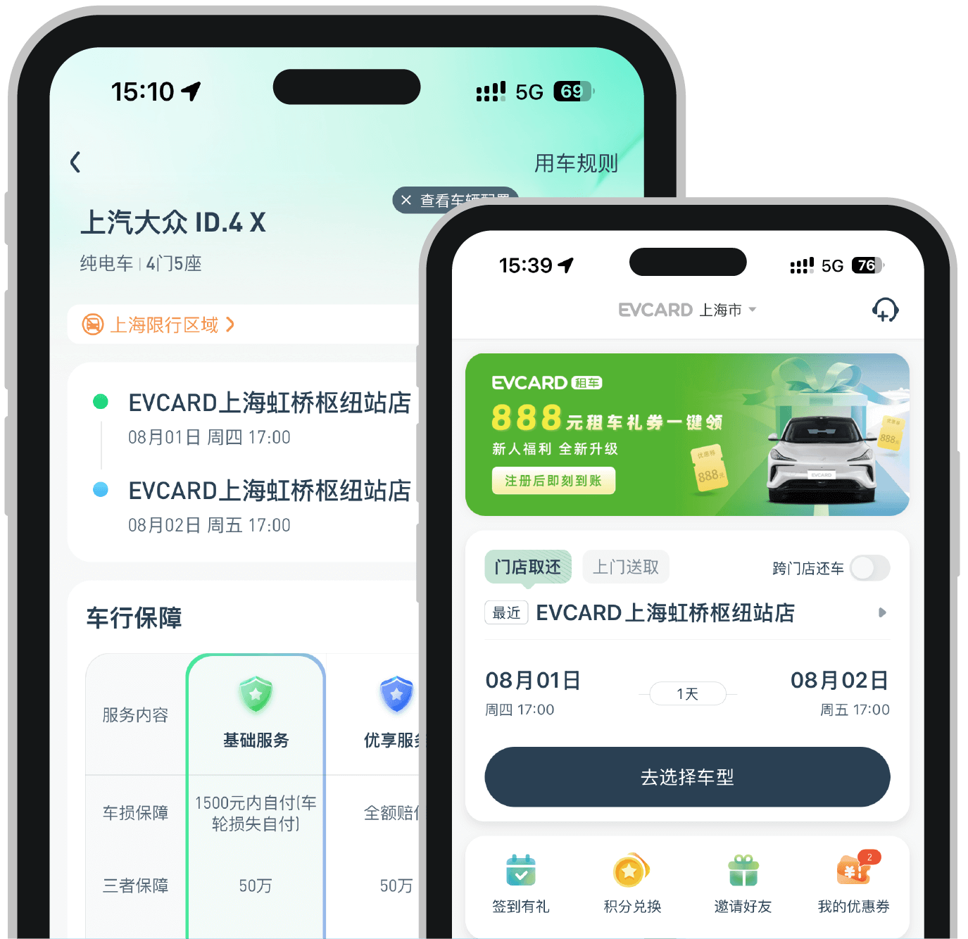 小程序:可通過微信、支付寶平臺搜索“EVCARD租車”小程序進行預定。